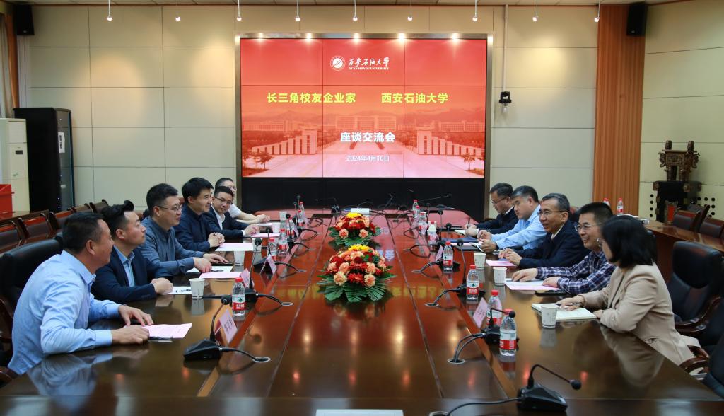 长三角校友企业家代表返校开展校企合作交流4月16日上午,长三角校友企业家代表返校进行校企合作交流。合作交流会在雁塔校区第二会议室召开,校党委副书记张木,南京南大数字科技有限责任公司总经理盛炜炜、无锡美瑞克阀门制造有限公司总经理孙海东、黄山华能石化机械有限公司董事长李杨、上海飞舟博源材料科技股份有限公司总经理丁学光(长三角校友会副会长)、金湖县支点石油科技有限责任公司总经理鲁延瑞 、苏州博睿测控设备有限公司副总经理华乐(长三角校友会秘书长)出席会议。校友工作与合作交流处处长覃彪主持会议。